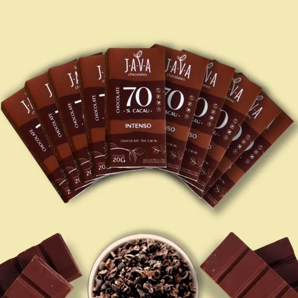 Chocolate brasileiro, 70% cacau, chocolates 100% cacau ou chocolates mais doces, com ingredientes de alta qualidade. Chocolates bean to bar, do grão à barra, desde 2015. Todos chocolates são: Chocolate zero lactose Chocolate zero soja Chocolate saudável Opções de Chocolate sem açúcar A Java se orgulha por fabricar exclusivamente chocolates veganos.